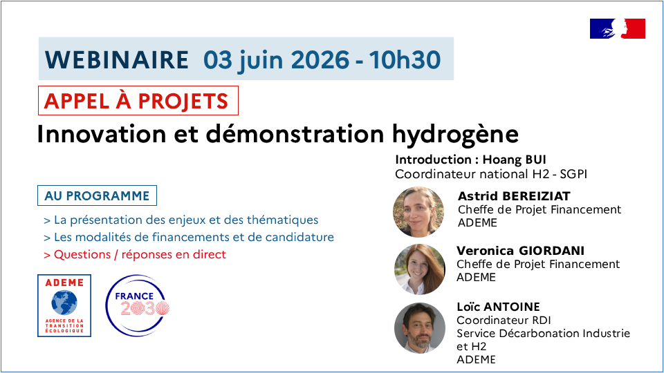 Ce webinaire a pour objectif de présenter ces deux appels à projets, opérés par l’ADEME, s’inscrivant dans le cadre de la stratégie d’accélération « Décarbonation de l’industrie » de France 2030. L’AAP (appel à projets) « DEMIBaC » Lien vers l’AAP su …